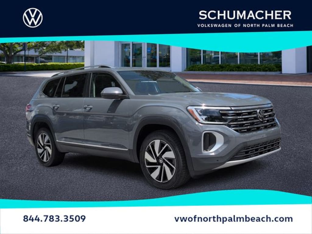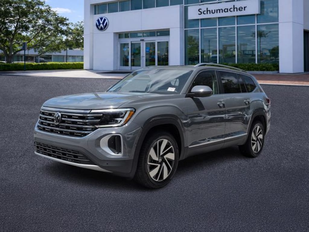 WE DELIVER TO YOUR HOME OR OFFICE !!! 3rd row seats: split-bench, 4-Wheel Disc Brakes, 4-Wheel Independent Suspension, 6 Speakers, ABS brakes, Air Conditioning, Alloy wheels, AM/FM radio: SiriusXM with 360L, Auto High-beam Headlights, Auto-dimming Rear-View mirror, Automatic temperature control, Brake assist, Bumpers: body-color, Compass, Delay-off headlights, Driver door bin, Driver vanity mirror, Dual front impact airbags, Dual front side impact airbags, Electronic Stability Control, Emergency communication system: VW Car-Net Safe & Secure 5-year, Exterior Parking Camera Rear, First Aid Kit, Four wheel independent suspension, Front anti-roll bar, Front Bucket Seats, Front Center Armrest, Front dual zone A/C, Front fog lights, Front reading lights, Fully automatic headlights, Garage door transmitter: HomeLink, Heads-Up Display, Heated and Actively Ventilated Front Bucket Seats, Heated door mirrors, Heated front seats, Heated rear seats, Heated steering wheel, Heavy Duty Trunk Liner with VW CarGo Blocks, Illuminated entry, Low tire pressure warning, Memory seat, Navigation System, Occupant sensing airbag, Outside temperature display, Overhead airbag, Overhead console, Panic alarm, Passenger door bin, Passenger vanity mirror, Perforated Vienna Leather Seating Surfaces, Power door mirrors, Power driver seat, Power Liftgate, Power moonroof: Panoramic, Power passenger seat, Power steering, Power windows, Radio data system, Radio: MIB3 Discover Pro with Navigation, Rain sensing wipers, Rear air conditioning, Rear anti-roll bar, Rear reading lights, Rear seat center armrest, Rear window defroster, Rear window wiper, Remote keyless entry, Roadside Assistance Kit, Rubber Mats Kit (2-Row), Security system, Speed control, Speed-sensing steering, Split folding rear seat, Spoiler, Steering wheel mounted audio controls, Tachometer, Telescoping steering wheel, Tilt steering wheel, Traction control, Trip computer, Turn signal indicator mirrors, Variably intermittent wipers, Ventilated front seats, Volkswagen Logo Puddle Lights, VW Care, and Wheels: 20" 2-Tone Machined Alloy. Price includes: $1000 - Customer Bonus. Exp. 04/30/2026