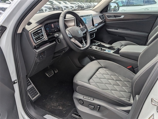 WE DELIVER TO YOUR HOME OR OFFICE !!! 10 Speakers, 3rd row seats: split-bench, 4-Wheel Disc Brakes, 4-Wheel Independent Suspension, ABS brakes, Air Conditioning, Alloy wheels, AM/FM radio: SiriusXM with 360L, Auto High-beam Headlights, Auto-dimming Rear-View mirror, Automatic temperature control, Brake assist, Bumpers: body-color, Compass, Delay-off headlights, Driver door bin, Driver vanity mirror, Dual front impact airbags, Dual front side impact airbags, Electronic Stability Control, Emergency communication system: VW Car-Net Safe & Secure 5-year, Exterior Parking Camera Rear, First Aid Kit, Four wheel independent suspension, Front anti-roll bar, Front Bucket Seats, Front Center Armrest, Front dual zone A/C, Front fog lights, Front reading lights, Fully automatic headlights, Garage door transmitter: HomeLink, harman/kardon® Speakers, Heads-Up Display, Heated & Actively Ventilated Front Bucket Seats, Heated door mirrors, Heated front seats, Heated rear seats, Heated steering wheel, Heavy Duty Trunk Liner w/VW CarGo Blocks, Illuminated entry, Leather steering wheel, Low tire pressure warning, Luggage Net, Memory seat, Navigation System, Occupant sensing airbag, Outside temperature display, Overhead airbag, Overhead console, Panic alarm, Passenger door bin, Passenger vanity mirror, Perforated Vienna Leather Seating Surfaces, Power door mirrors, Power driver seat, Power Liftgate, Power moonroof: Panoramic, Power passenger seat, Power steering, Power windows, Radio data system, Radio: MIB3 Discover Pro w/Navigation, Rain sensing wipers, Rear air conditioning, Rear anti-roll bar, Rear audio controls, Rear reading lights, Rear seat center armrest, Rear window defroster, Rear window wiper, Remote keyless entry, Retractable Privacy Cover For Cargo Area, Roadside Assistance Kit, Rubber Mats Kit (2-Row), Seat Inserts w/Diamond-Pattern Stitching, Security system, Speed control, Speed-sensing steering, Split folding rear seat, Spoiler, Sport steering wheel, Steering wheel mounted audio controls, Tachometer, Telescoping steering wheel, Tilt steering wheel, Traction control, Trip computer, Turn signal indicator mirrors, Variably intermittent wipers, Ventilated front seats, Volkswagen Logo Puddle Lights, VW Care, and Wheels: 21" 2-Tone Machined Alloy. Price includes: $3000 - Retail Customer Bonus. Exp. 02/02/2026
