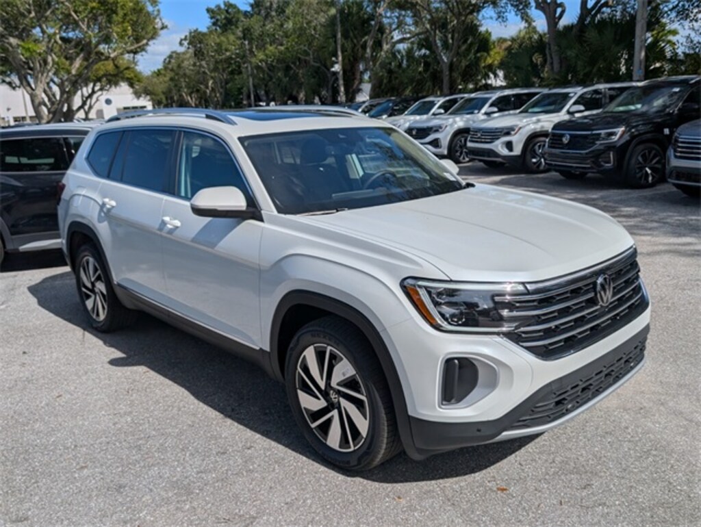 WE DELIVER TO YOUR HOME OR OFFICE !!! Trailer Hitch Extras, 2nd-Row Dual Captain's Chairs, 3rd row seats: split-bench, 4-Wheel Disc Brakes, 4-Wheel Independent Suspension, 6 Speakers, ABS brakes, Air Conditioning, Alloy wheels, AM/FM radio: SiriusXM with 360L, Auto High-beam Headlights, Auto-dimming Rear-View mirror, Automatic temperature control, Brake assist, Bumpers: body-color, Compass, Delay-off headlights, Driver door bin, Driver vanity mirror, Dual front impact airbags, Dual front side impact airbags, Electronic Stability Control, Emergency communication system: VW Car-Net Safe & Secure 5-year, Exterior Parking Camera Rear, First Aid Kit, Four wheel independent suspension, Front anti-roll bar, Front Bucket Seats, Front Center Armrest, Front dual zone A/C, Front fog lights, Front reading lights, Fully automatic headlights, Garage door transmitter: HomeLink, Heads-Up Display, Heated and Actively Ventilated Front Bucket Seats, Heated door mirrors, Heated front seats, Heated rear seats, Heated steering wheel, Heavy Duty Trunk Liner with VW CarGo Blocks, Illuminated entry, Low tire pressure warning, Memory seat, Navigation System, Occupant sensing airbag, Outside temperature display, Overhead airbag, Overhead console, Panic alarm, Passenger door bin, Passenger vanity mirror, Perforated Vienna Leather Seating Surfaces, Power door mirrors, Power driver seat, Power Liftgate, Power moonroof: Panoramic, Power passenger seat, Power steering, Power windows, Radio data system, Radio: MIB3 Discover Pro with Navigation, Rain sensing wipers, Rear air conditioning, Rear anti-roll bar, Rear reading lights, Rear seat center armrest, Rear window defroster, Rear window wiper, Remote keyless entry, Retractable Privacy Cover For Cargo Area, Roadside Assistance Kit, Rubber Mats Kit (2-Row), Security system, Speed control, Speed-sensing steering, Split folding rear seat, Spoiler, Steering wheel mounted audio controls, Tachometer, Telescoping steering wheel, Tilt steering wheel, Traction control, Trip computer, Turn signal indicator mirrors, Variably intermittent wipers, Ventilated front seats, Volkswagen Logo Puddle Lights, VW Care, and Wheels: 20" 2-Tone Machined Alloy. Price includes: $1500 - Retail Customer Bonus. Exp. 01/05/2026
