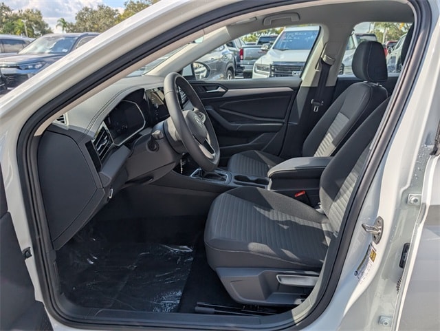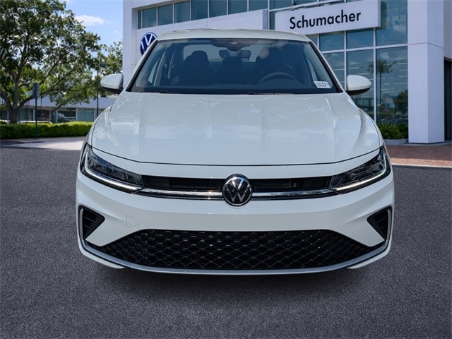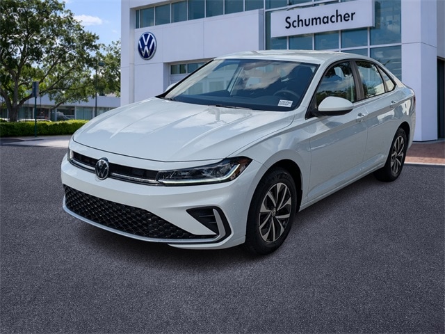 29/40 City/Highway MPG Pure White 2026 Volkswagen Jetta 1.5T S FWD 8-Speed Automatic with Tiptronic 1.5L I-4 DI DOHC Turbocharged Titan Blk Cloth.