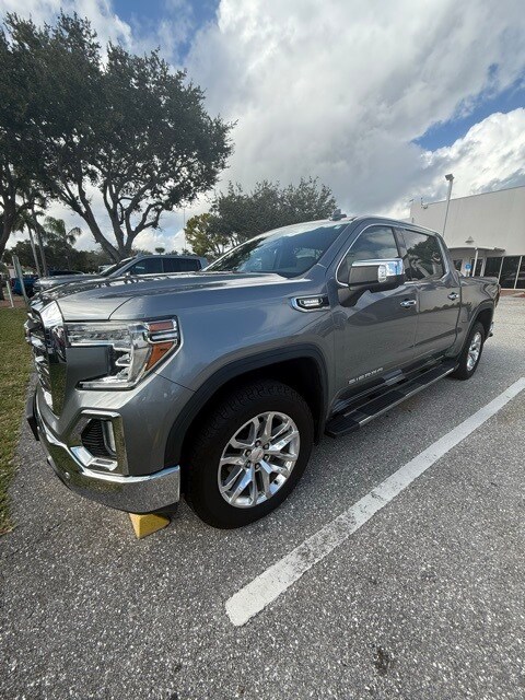 Certified. Satin Steel Metallic 2021 GMC Sierra 1500 SLT 4WD 10-Speed Automatic 3.0L I6 10-Speed Automatic, 4WD, Dark Walnut/Slate Leather.