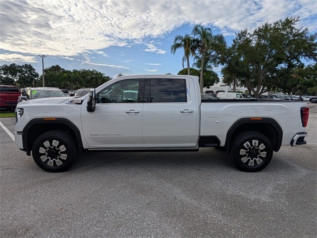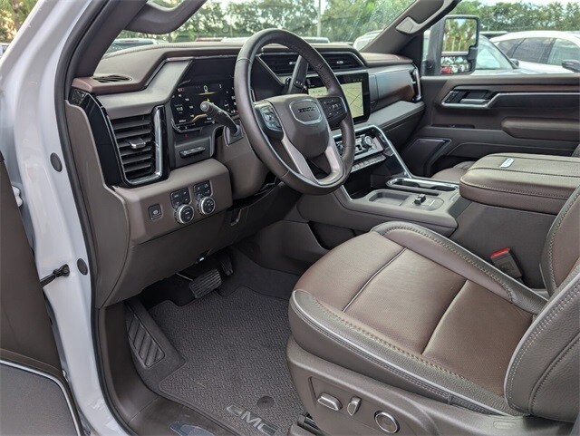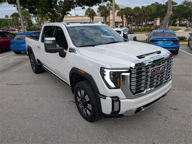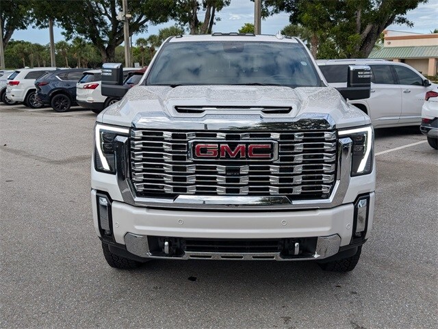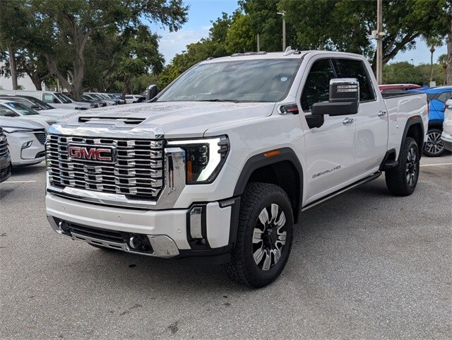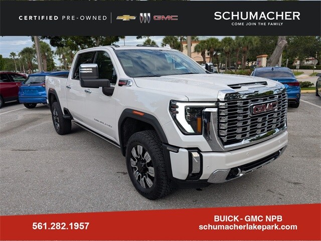Certified. White Frost Tricoat 2025 GMC Sierra 2500HD Denali 4WD 10-Speed Automatic Duramax 6.6L V8 Turbodiesel 10-Speed Automatic, 4WD, Atmosphere/Brownstone Leather.
