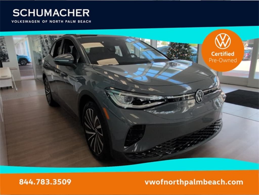 WE DELIVER TO YOUR HOME OR OFFICE !! Volkswagen Certified Pre-Owned Certified, 2-in-1 (240V/120V) EV Charging Cable, 4-Wheel Independent Suspension, 4.39 Axle Ratio, 7 Speakers, ABS brakes, Air Conditioning, Alloy wheels, Auto High-beam Headlights, Auto-dimming Rear-View mirror, Automatic temperature control, Brake assist, Bumpers: body-color, Delay-off headlights, Driver door bin, Driver vanity mirror, Driver's Seat Mounted Armrest, Dual front impact airbags, Dual front side impact airbags, Electronic Stability Control, Emergency communication system: VW Car-Net Safe & Secure 5-year, Exterior Parking Camera Rear, Four wheel independent suspension, Front anti-roll bar, Front Bucket Seats, Front dual zone A/C, Front fog lights, Front reading lights, Fully automatic headlights, Heated door mirrors, Heated Front Seats, Heated front seats, Heated steering wheel, Illuminated entry, Low tire pressure warning, Luggage Net, Memory seat, Navigation System, Occupant sensing airbag, Outside temperature display, Overhead airbag, Overhead console, Panic alarm, Passenger door bin, Passenger seat mounted armrest, Passenger vanity mirror, Perforated V-Tex Leatherette Seating Surfaces, Power door mirrors, Power driver seat, Power Liftgate, Power passenger seat, Power steering, Power windows, Radio data system, Radio: Discover Pro Max w/Touchscreen Navigation, Rain sensing wipers, Rear anti-roll bar, Rear reading lights, Rear seat center armrest, Rear window defroster, Rear window wiper, Remote keyless entry, Speed control, Speed-sensing steering, Split folding rear seat, Spoiler, Steering wheel mounted audio controls, Telescoping steering wheel, Tilt steering wheel, Traction control, Trip computer, Turn signal indicator mirrors, Variably intermittent wipers, and Wheels: 20" 5-Spoke 2-Tone Machined Alloy. Recent Arrival! Odometer is 5566 miles below market average! 115/98 City/Highway MPG